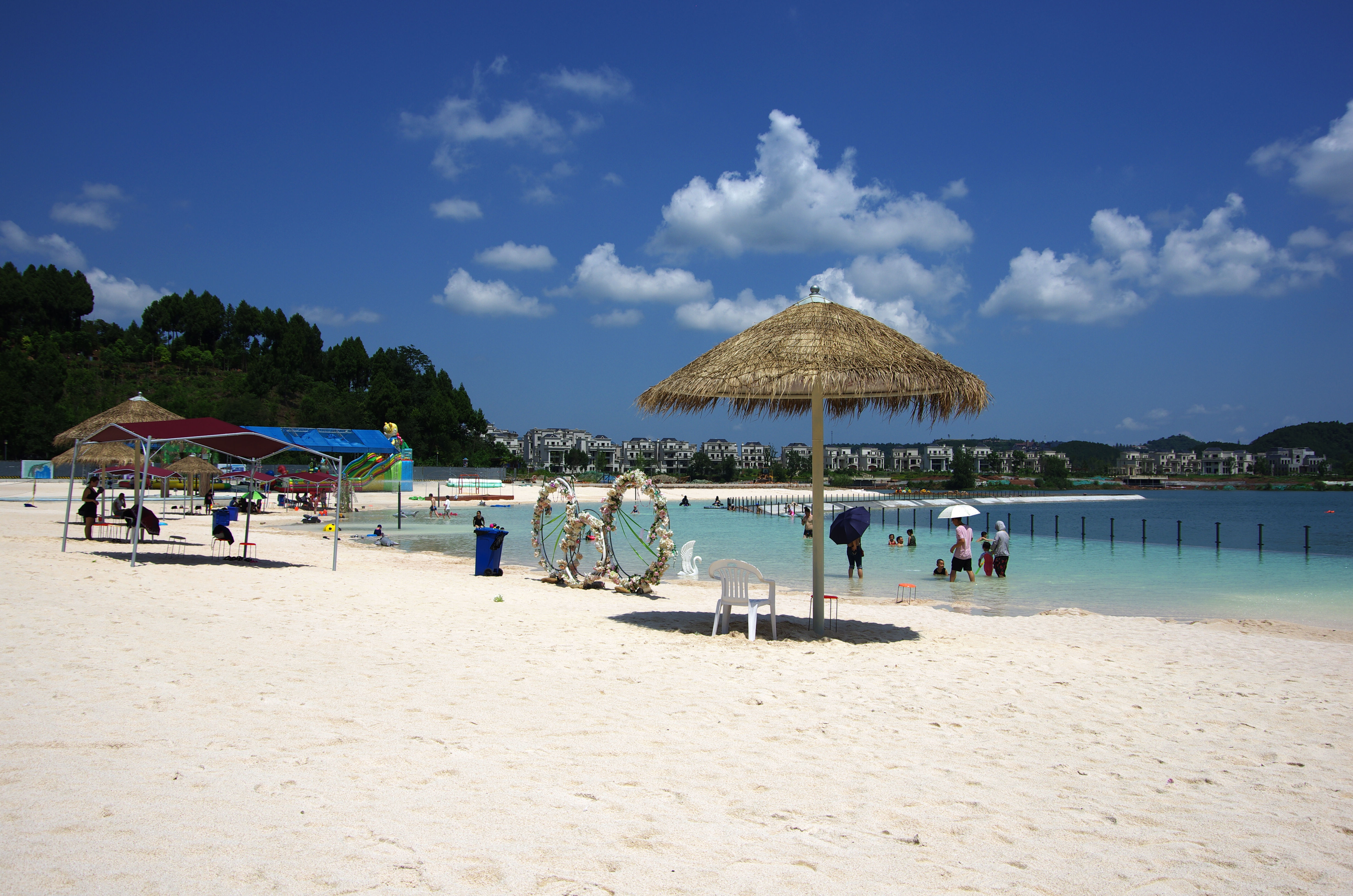 綿陽嘉成文化旅游有限公司是一家旅游開發(fā)公司,成立于2019年。 親水灣沙灘樂園項目由綿陽嘉成文化旅游有限公司開發(fā)運(yùn)營,位于國家級水利風(fēng)景區(qū)——綿陽市仙海水利風(fēng)景區(qū),距綿陽市區(qū)15公里,車程約半個小時,是依托沉抗水庫建設(shè)的仙海風(fēng)景區(qū)重點(diǎn)旅游項目。進(jìn)入仙海風(fēng)景區(qū)上坡向左進(jìn)入環(huán)湖路前行1000米。項目總占地220畝,其中核心沙灘樂園占地100畝,現(xiàn)建成沙灘休閑、淺灘嬉水、水上運(yùn)動,親子蹦蹦云、網(wǎng)紅多人秋千、人力過山車、水幕秋千、團(tuán)隊拓展等項目十余個,還開設(shè)有特色中餐、仙?;疱侓~,自助燒烤等飲食項目。 近觀青山綠水,遠(yuǎn)眺碧波蕩漾,清晨朝霞映翠、傍晚水天一色。親水灣沙灘主題樂園有可容納200人的沙灘會議室和30人的小型會議室;棋牌室16間; 商務(wù)KTV;餐飲中心可同時容納300人用餐;篝火晚會場地等,是婚禮壽宴、同學(xué)聚會、餐飲娛樂、商務(wù)會議、拓展培訓(xùn)、家庭親子活動的首選之地。